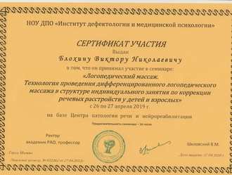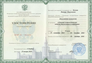 Сертификат о проф переподготовке 1."Основы нейропсихологии" 2. "Нейропсихология в клинической практике" 3. "Афазия" 4. "Дизартрия Выдан "Центр патологии речи и нейрореабилитации 2016 год
