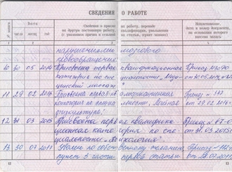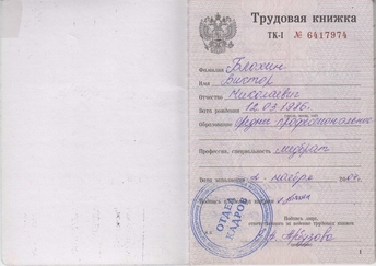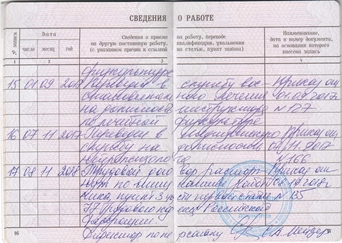 Выписка из трудовой книги "Принят на должность медицинского брата по лечебной физкультуре" Место работы "ГБУ РО Скопинская ЦРБ" 2007 год