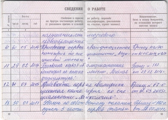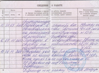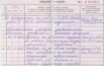 Сведения о трудовой книге "№ 6417674" Дата заполнения "02 ноября 2007 года"